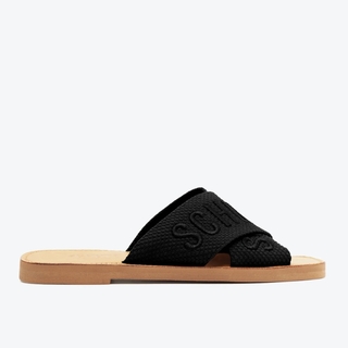 Rasteira Tiras Cruzadas Schutz Bordada Logo Preta