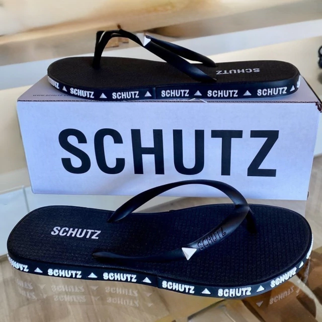 Características principais: - Material: Borracha resistente e flexível - Design: Bico redondo confortável - Detalhe: Logo Schutz em torno da palmilha, para um visual exclusivo - Cor: Preta com logo branca marcante e versátil