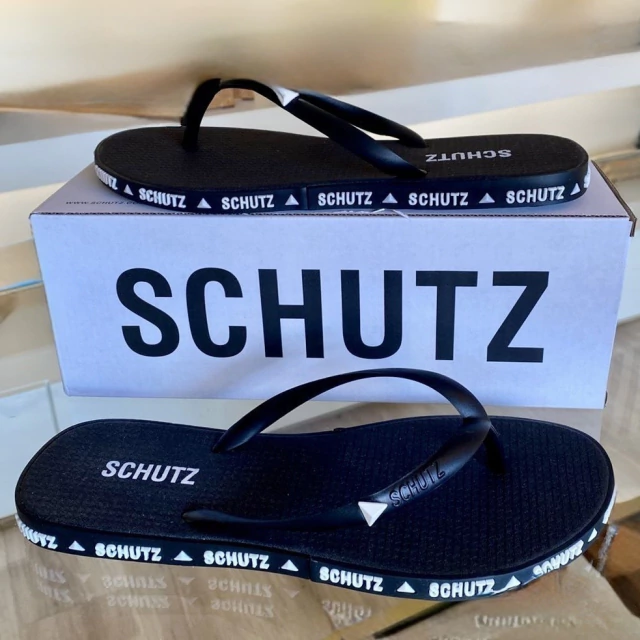 Descubra o charme deste chinelo de borracha com bico redondo, perfeito para quem busca praticidade sem abrir mão do estilo. Com a assinatura da Schutz destacada em torno da palmilha, este modelo traz um toque exclusivo que valoriza seus pés em qualquer ocasião.