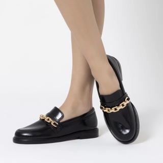 Este loafer em couro é a definição perfeita de estilo clássico aliado à modernidade. O destaque fica por conta do detalhe de fivela dourada na pala, que confere um charme único e sofisticado ao calçado.