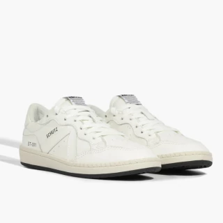 Tênis em couro com solado escuro, reto, fino e antiderrapante. Possui listras pretas laterais e bico em camurça(couro). Este tênis é super moderno, confortável e o mais pedido pelas fashionistas no momento. Pode apostar. Material: couro